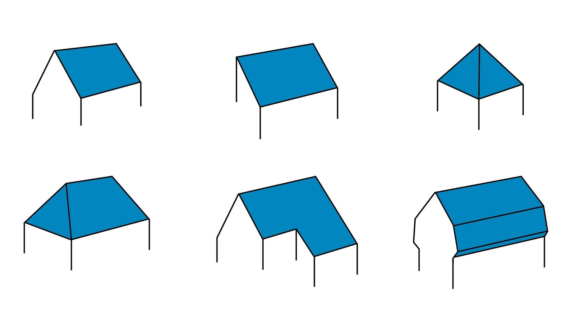 De quelle forme de toit s’agit-il ? Toits 2 pans, 1 pan pyramidal, etc. Veuillez nous indiquer la forme du toit et dessiner la vue en élévation de votre toit, avec les longueurs et superficies réelles.