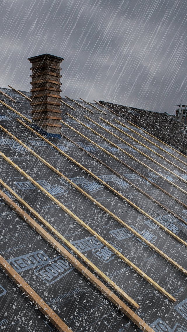 Les écrans de sous-toiture pro clima offrent une protection supplémentaire essentielle : même lorsque les tuiles cassent sous l'impact des grêlons, les écrans maintiennent la paroi au sec.